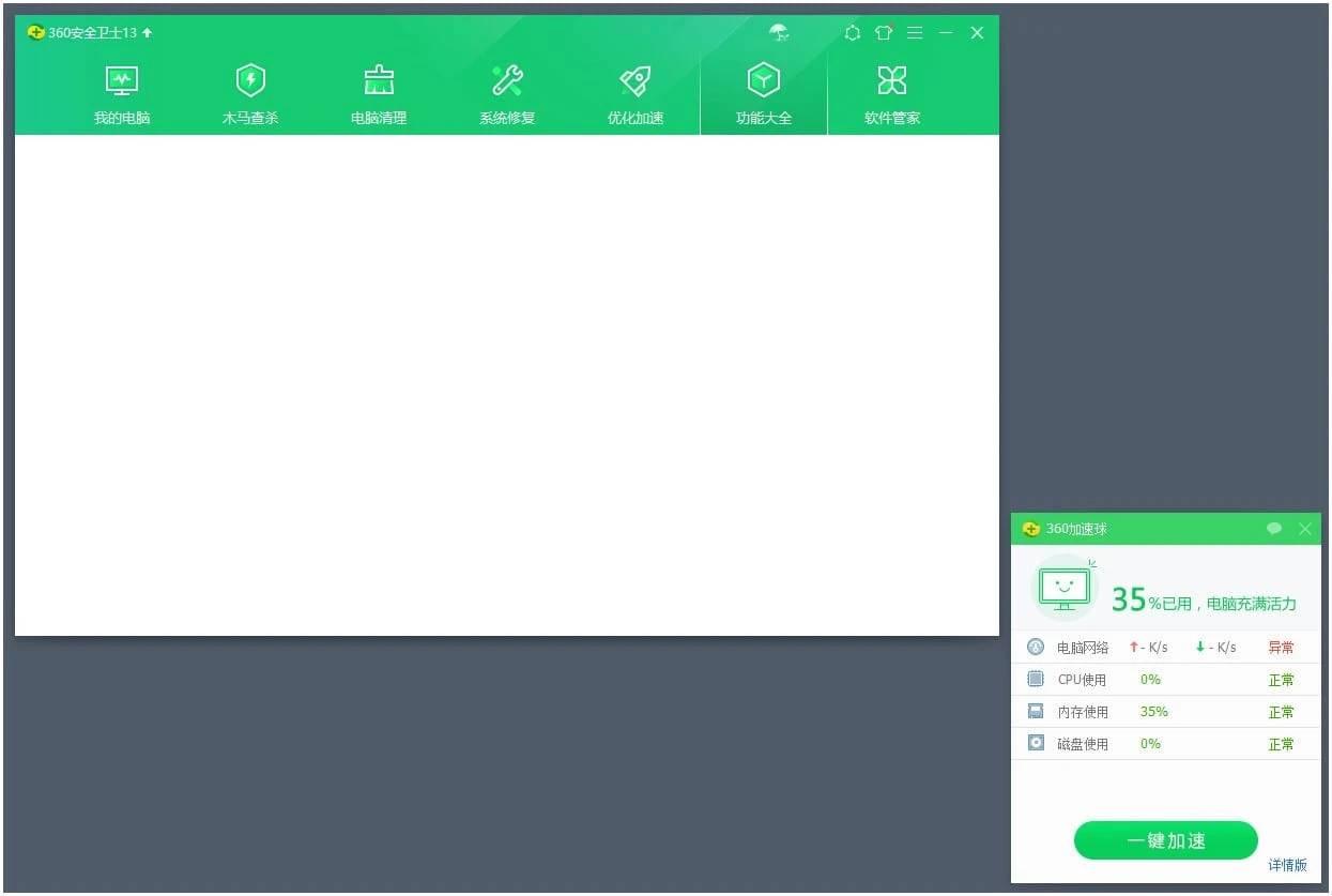 本次为大家分享的是360加速球+U盘悬浮窗v13.0.0.1141