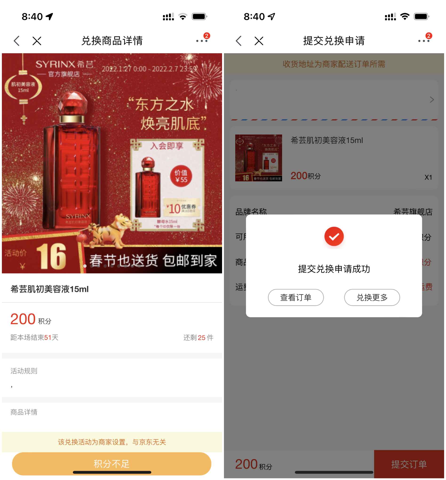 本文是在京东加入希芸旗舰店送200店铺积分(加入会员前会显示),使用200积分可以兑换包邮美容液15ML或120g清新牙膏,奖品数量有限!