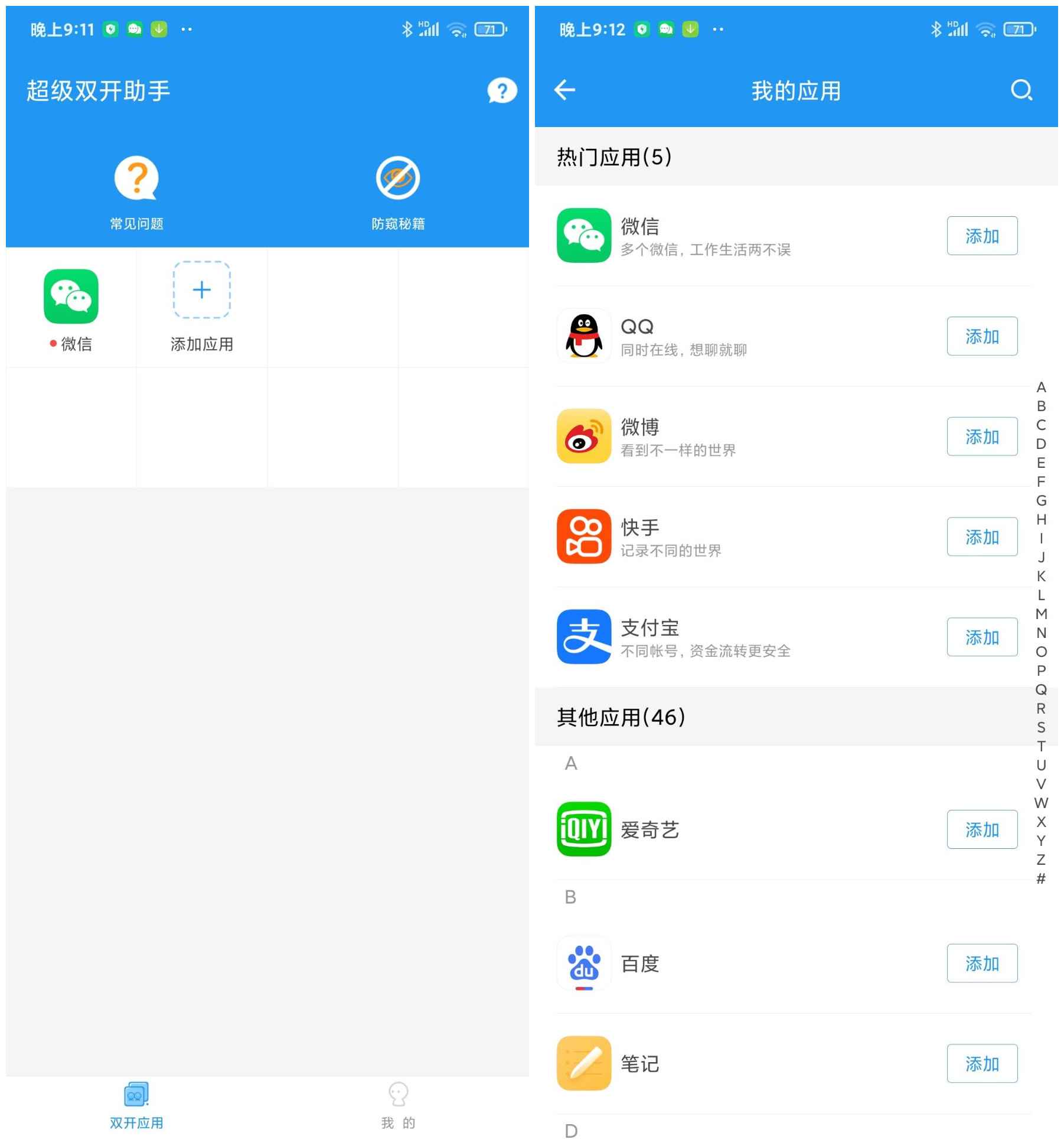 超级双开助手会员版专门为需要在手机上双开的小伙伴准备的非常不错的APP软件,支持多种软件双开,风格极简且干净。是多个微商的好伙伴,相信不少的用户都会用得着,赶紧下载最新的超级双开助手体验吧!