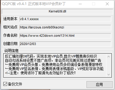 本次为大家分享的是QQ_v9.5.4.x破解版本地VIP会员补丁